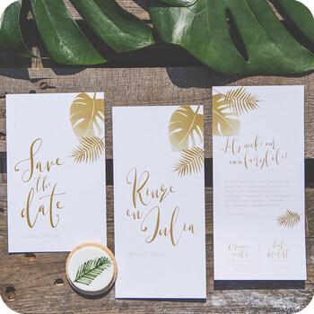 Door de verschillende kaartjes, stickers en posters uit onze collecties te combineren kunnen jullie een eigen trouwhuisstijl maken. Voeg jullie eigen teksten toe en jullie stijl is helemaal uniek! IT'S A GREAT DAY heeft alles om jullie bruiloft persoonlijk te maken: save the date-kaarten, trouwkaarten, RSVP kaarten, menukaarten, fotostrips, bedankkaarten, naamkaartjes, labels, stickers, posters en nog veel meer. En alles is gemakkelijk door jullie zelf aan te passen in onze online editor.